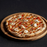 The meat pizza features a marinara base topped with mozzarella from Yester Farm, scotch bonnet chillies, rosemary roasted potato, seasoned sausage meat from Campbells Prime Meat, parmesan and a finishing drizzle of whisky-infused Scottish heather honey made using Woven Whisky.