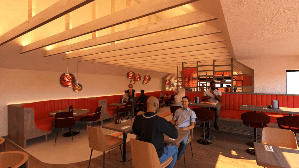 The experience will begin with a welcoming bar and retail space. From there, guests will move into a private dining and tasting room, divided by a bespoke stave wall that offers a sense of separation while still feeling connected. Beyond this, the space will open out into a relaxed bistro, with a mix of cosy booths and flexible seating for up to 62 guests. At its heart, a chef’s table-style finishing kitchen will add a touch of theatre, bringing energy and interaction to the dining experience.