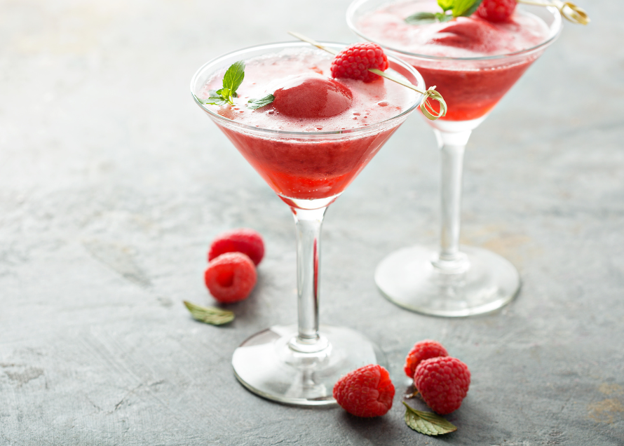 In a large wine glass or flute, add a small scoop of raspberry sorbet and a measure of vodka, then a splash of something aromatic such as Lillet Blanc and a drizzle of raspberry liqueur if you have it to hand. Top gently with chilled sparkling wine, pouring down the side of the glass to avoid too much foam. The sorbet will slowly melt into the fizz, giving the drink a shifting blush of colour and a gentle tartness that stops it from becoming overly sweet.