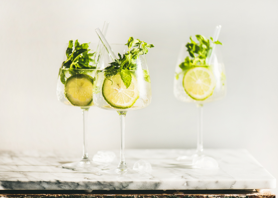 Build the drink directly in a large wine glass with plenty of ice: start with a measure of elderflower liqueur or cordial, then top with Prosecco and a splash of soda water, stirring gently to combine without knocking out all the bubbles. Garnish with a wedge of lime and a handful of fresh mint, giving the mint a brief clap between the hands to wake up the aroma before dropping it into the glass. The result is a fresh, floral spritz that guests can happily drink all evening, sitting neatly alongside the richer whisky cocktails on the table.